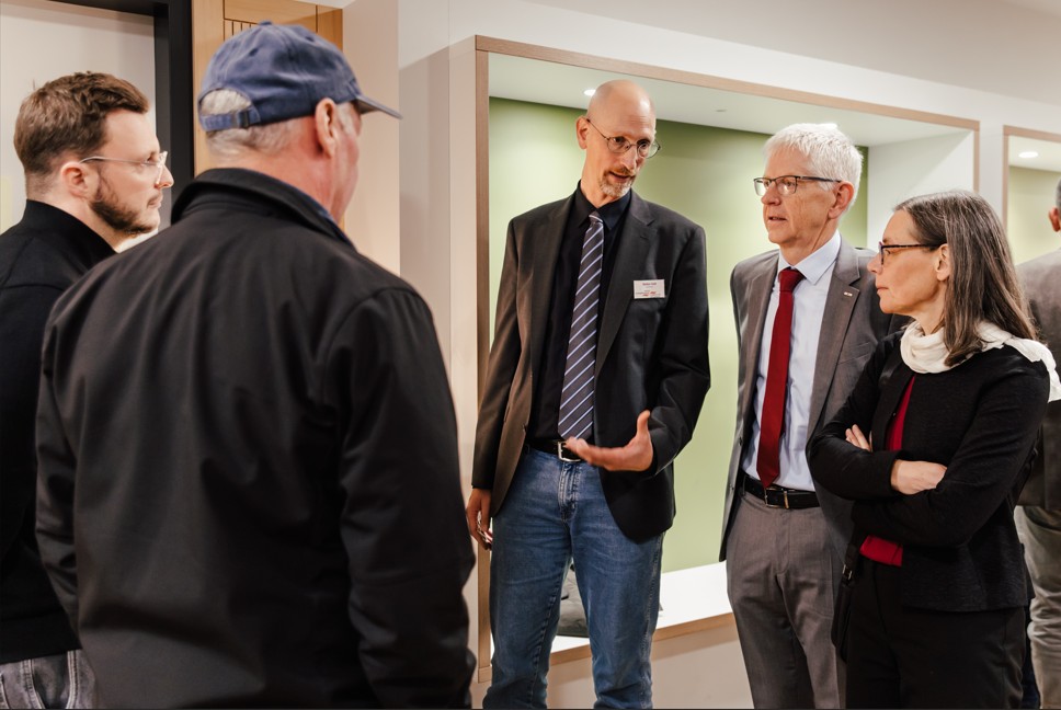 Initiiert wurde die "Kunst am Bau" durch die Spende von Angelika und Martin Eitel anlässlich der Fertigstellung der Sanierung und Erweiterung des Marta-Schanzenbach-Gymnasium im Jahr 2024. Nach der Begrüßung von Herrn Feld folgten Grußworte von Herrn Bürgemeister Müller. Er würdigte eindrucksvoll Marta Schanzenbachs historisches Wirken und zog Parallelen zu ihrer Vorbildfunktion in der heutigen Zeit. Die Einführung zur "Kunst am Bau" erfolge durch Herrn Eitel:
